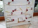 Bemalte IKEA-Kommode "Rast", Naturholz Kiefer, mit drei Schubladen.